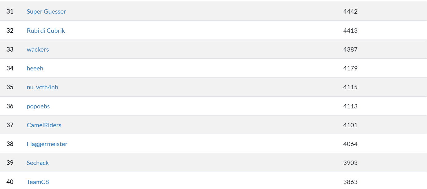 요즘에 ctftime에서 열리는 해외 CTF를 오랫동안 안하기도 했고 나의 개인 능력이 궁금하기도 해서 오랜만에 ctftime에서 여는 CTF를 열심히 뛰어봤다. 원래는 C4C에서 뛰지만 휴식기이기도 하고 혼자서 어디까지 가능한가 테스트해보고도 싶어서 혼자서 뛰었다. 주 분야인 포너블도 없는 CTF였는데 솔플로 꽤 많이 푼것 같다.