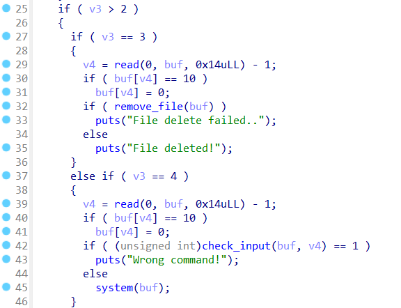바이너리 분석을 해보면 bof를 2군데서 준다. 첫번째 bof는 트리거하려면 조건이 있고 조건 만족하려면 rand함수 값 맞춰야되서 귀찮아진다. 그래서 조건없는 두번째 bof로 그냥 32bit rop하면 된다.