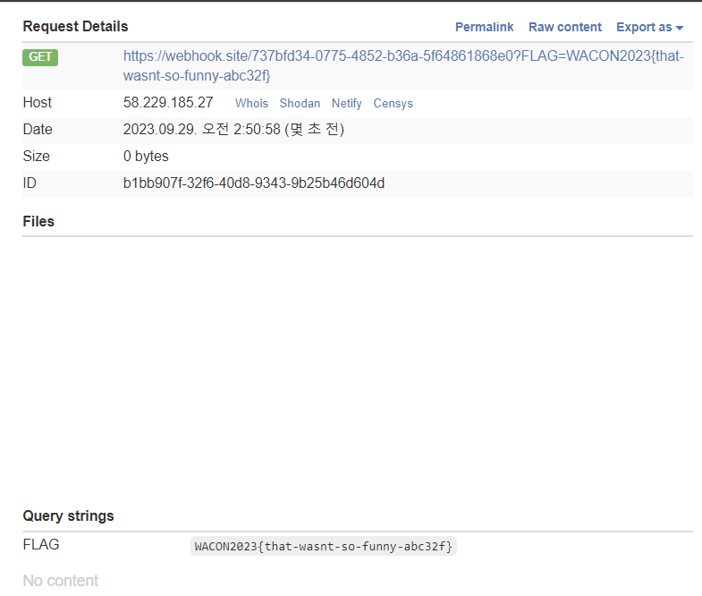 검증을 통과하는 값을 찾았을때 봇이 pastContent가 플래그인 상태로 위에서 열어둔 서버에 방문하고