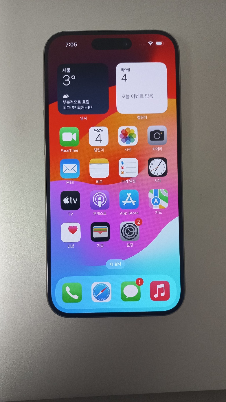 초기 세팅을 마치고 켜진 휴대폰이다. 이것저것 확인해본 결과 이상 없는 새 폰인게 확인되었다.