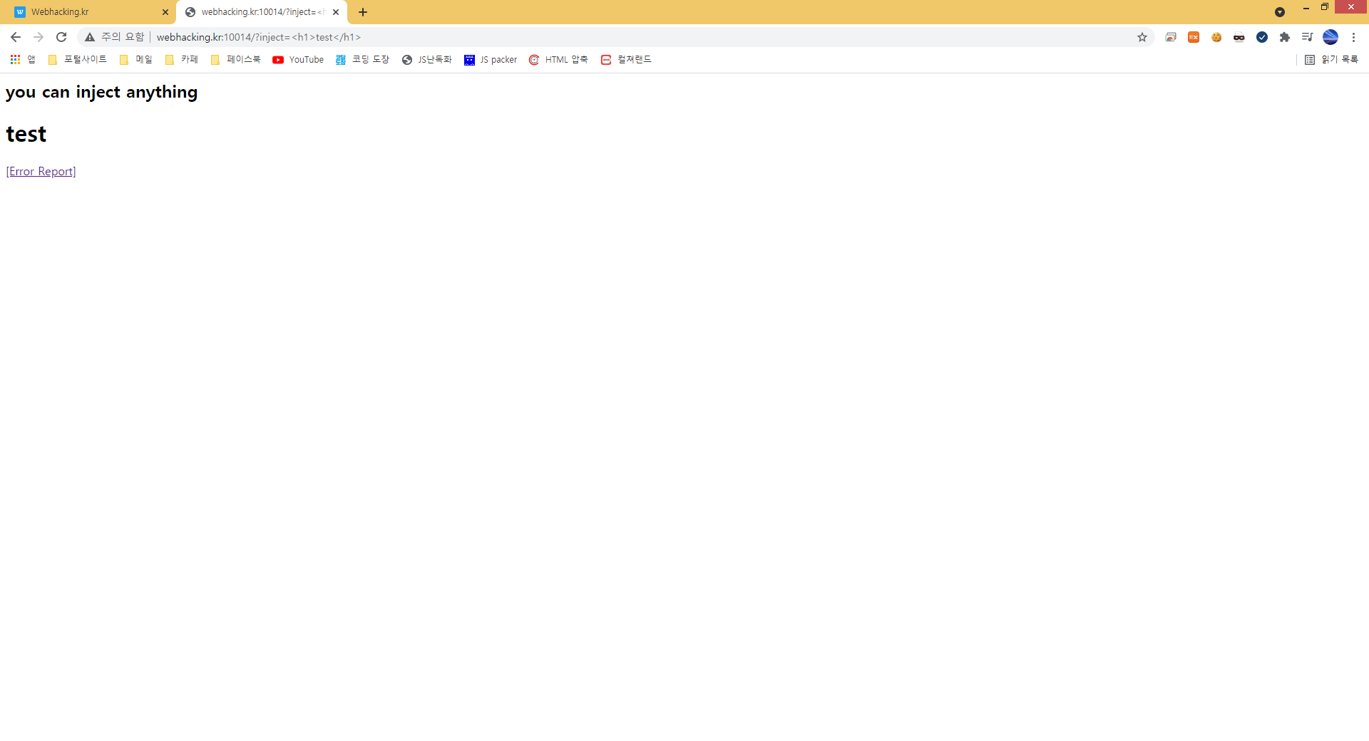 태그 인젝션이 가능하다. report기능이 있으니까 xss를 하면 된다.