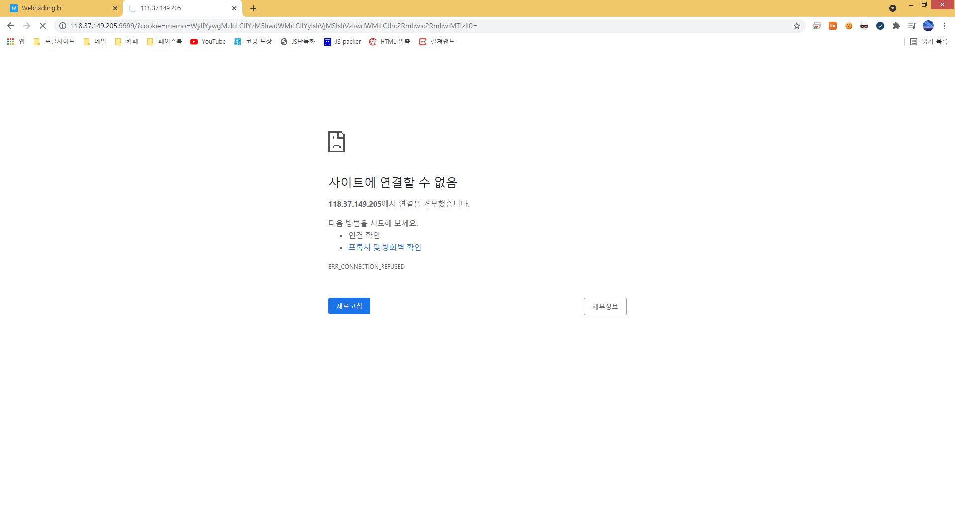 결론은 이렇게 보내면 내 개인서버로 쿠키가 딸려들어와서 플래그를 얻을 수 있다. 그리고 url+document.cookie할때 +를 2번 url인코딩 해준 이유는 그냥 url에 +를 넣으면 공백으로 인식된다. 그렇다고 %2b를 넣어도 공백으로 인식되는것이다. 따라서 한번더 인코딩해서 %252b를 넣었더니 +로 잘 인식된다.