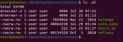 start.sh파일은 qemu의 실행 옵션이 들어가 있는 셸 스크립트 파일이다. 마지막으로 vmlinux파일은 커널 컴파일시 생성되는 이미지 파일이다. vmlinux를 통해서 함수 offset같은걸 알아낼 수 있다.