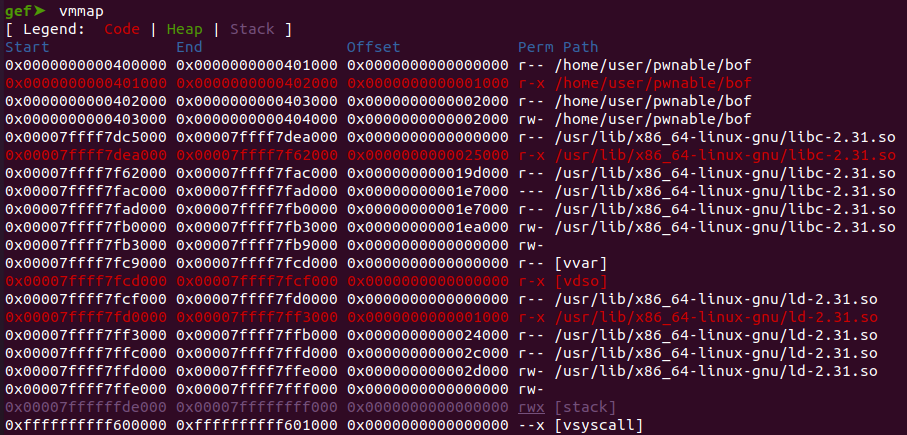 스택 영역에 rw권한이 있는것을 볼 수 있습니다. 실행 권한을 뜻하는 x가 사라졌네요.