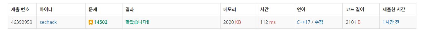 | [BOJ/백준] 17081번 - RPG Extreme (1) | 2022.08.03 |
