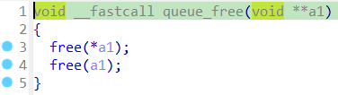 queue_free함수이다. 큐랑 큐의 정보를 저장하는 힙 청크를 해제한다.